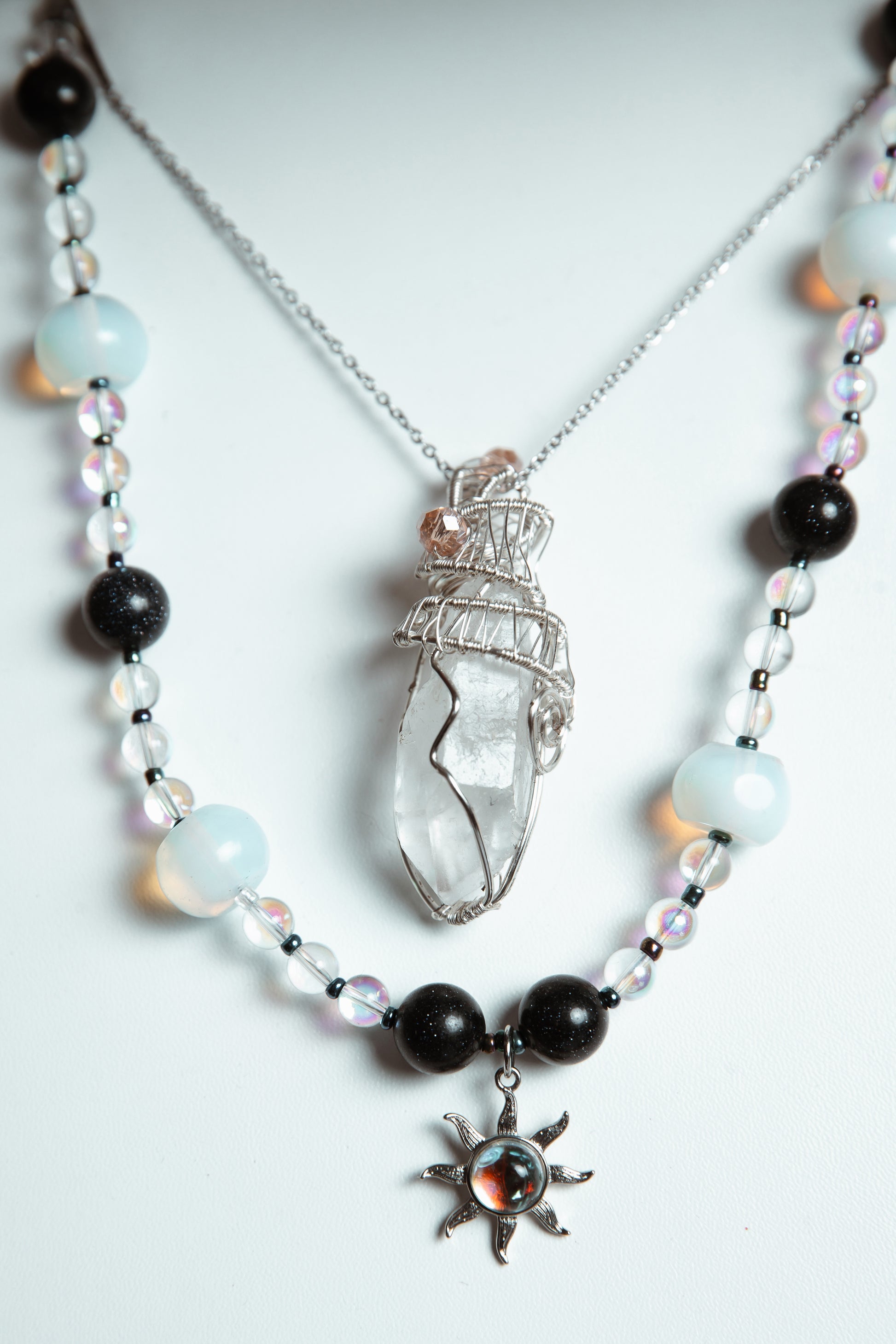 Collar alambrado a mano con cuarzo roza